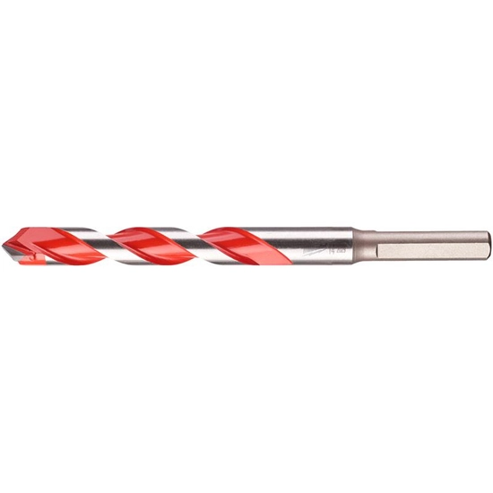 - Wiertła z końcówką z węglika wolframu (TCT) umożliwiają wiercenie w betonie, bloczkach z gazobetonu, murze, łupkach i granicie.