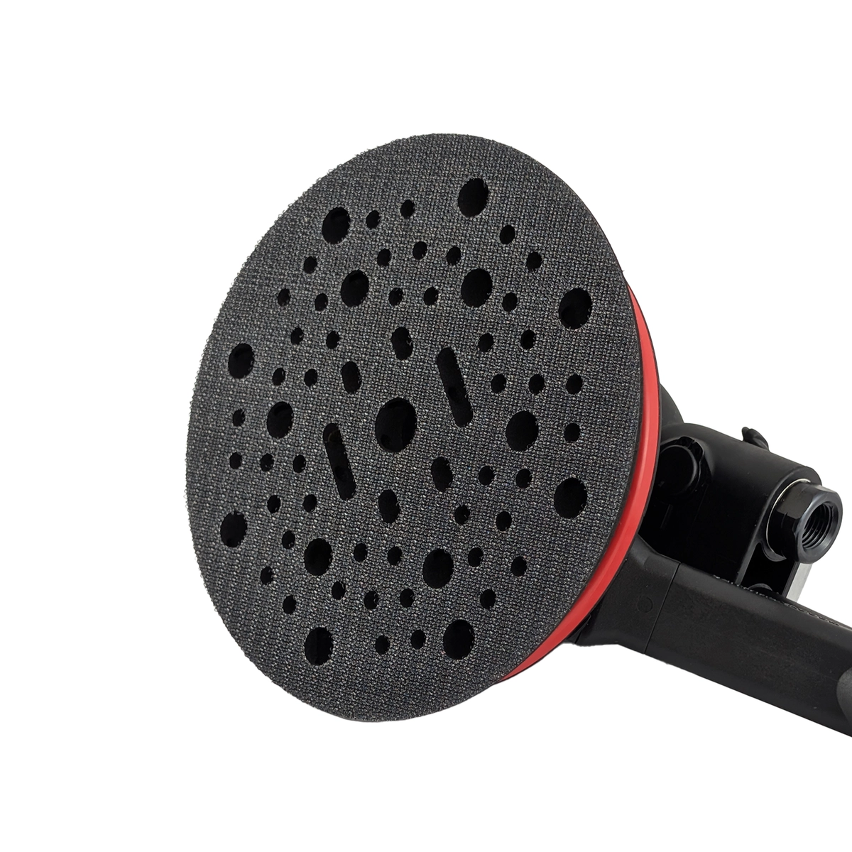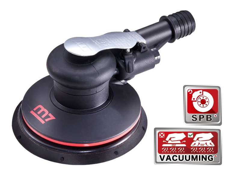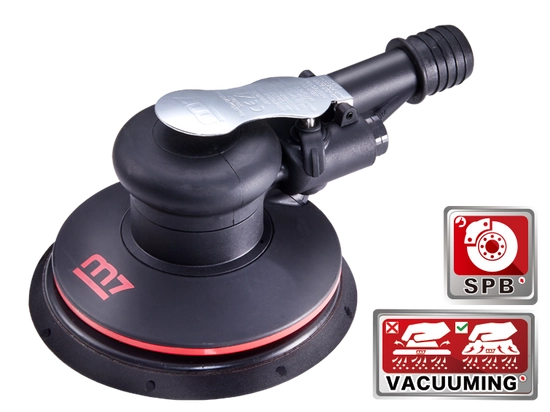 Pneumatyczna szlifierka oscylacyjno-obrotowa Mighty Seven QB-51602 została wyposażona w innowacyjny wielootworowy dysk roboczy, który charakteryzuje się wyjątkowo wysoką zdolnością do pochłaniania urobku po szlifowaniu. Dzięki zaawansowanej konstrukcji dysk efektywnie odprowadza pył powstający podczas pracy, co nie tylko zwiększa komfort użytkowania, ale także poprawia jakość wykończenia powierzchni. Urządzenie współpracuje z wszystkimi dostępnymi na rynku tarczami ściernymi firmy 3M, co czyni je wszechstronnym i uniwersalnym narzędziem, idealnym zarówno do zastosowań profesjonalnych, jak i warsztatowych. Dzięki kompatybilności z markowymi tarczami ściernymi, QB-51602 pozwala osiągać optymalne rezultaty, niezależnie od rodzaju obrabianego materiału. To rozwiązanie dedykowane dla użytkowników poszukujących precyzji, wydajności oraz łatwości w eksploatacji.
