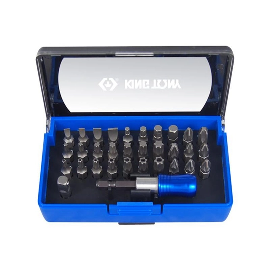 ZESTAW BITÓW 1/4" 32cz. Z UCHWYTEM 7702-25 +753-63, PŁASKIE 3 - 6mm, PH1-PH3, PZ1- PZ3, HEX 3 - 6mm, TORX T10 -T40 1032CQ King Tony