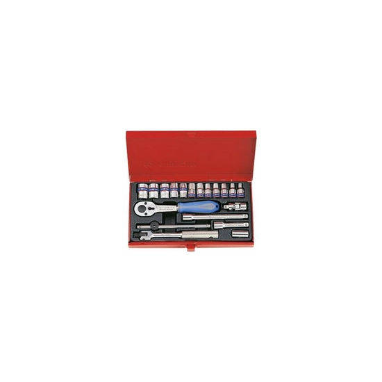 ZESTAW NASADEK 1/4" 19cz. KRÓTKIE 12-kąt. 4 - 13mm Z GRZECHOTKĄ I AKCESORIAMI, KASETA 2021MR King Tony