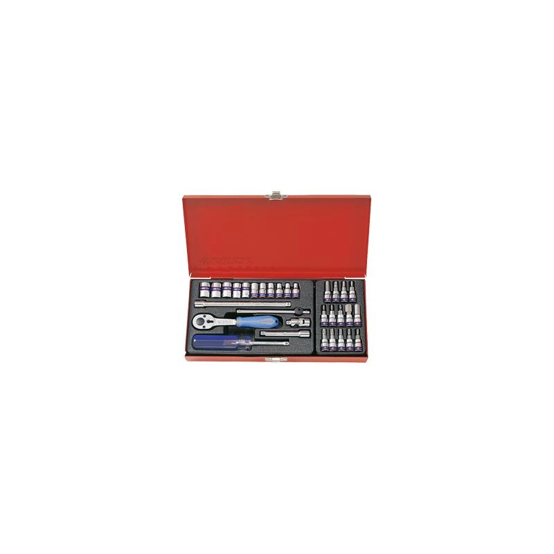 ZESTAW NARZĘDZI 1/4" 31cz. NASADKI 12-kąt. 4 - 13mm, T8 -T30, HEX 3 - 10 Z GRZECHOTKĄ I AKCESORIAMI, KASETA 2031MR King Tony