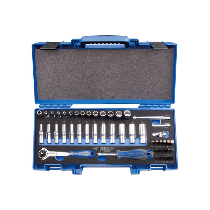 ZESTAW NARZĘDZI 1/4" 48cz. NASADKI 12-kąt. 4 - 14mm, HEX 3 - 10 Z GRZCHOTKĄ I AKCESORIAMI, WALIZKA 2048MRV King Tony