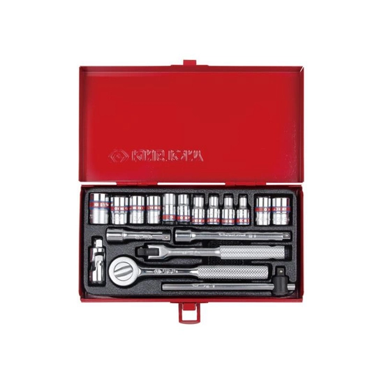 ZESTAW NASADEK CALOWYCH 1/4" 18cz. KRÓTKIE, 6/8-kąt. 5/32 - 1/2" Z GRZECHOTKĄ I AKCESORIAMI, KASETA 2518SR King Tony