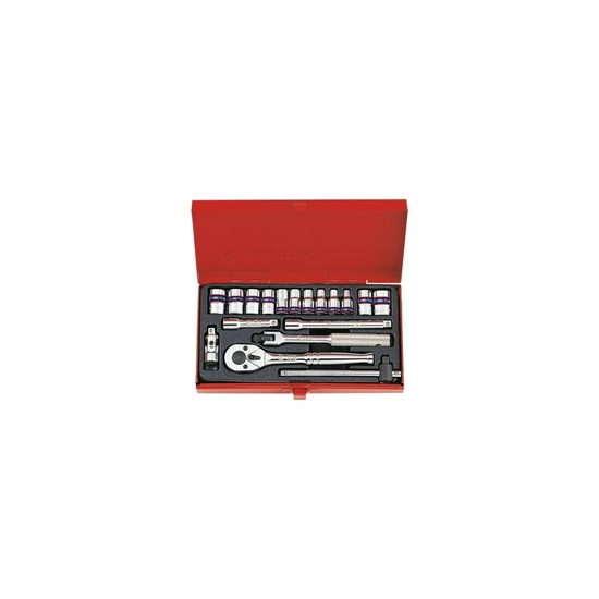 ZESTAW NASADEK 1/4" 18cz. KRÓTKIE, 6/8-kąt. 4 - 12mm Z GRZECHOTKĄ I AKCESORIAMI, KASETA 2519MR King Tony