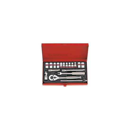 ZESTAW NASADEK CALOWYCH 1/4" 18cz. KRÓTKIE, 6/8-kąt. 5/32 - 1/2" Z GRZECHOTKĄ I AKCESORIAMI, KASETA 2519SR King Tony