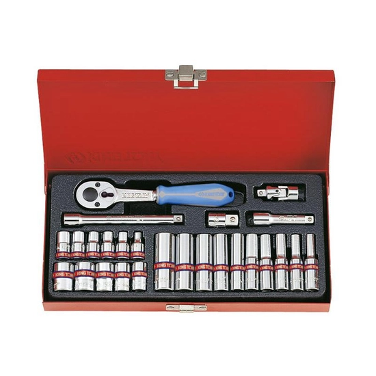ZESTAW NASADEK CALOWYCH 1/4" 26cz. KRÓTKIE + DŁUGIE, 6-kąt. 5/32 - 1/2" Z GRZECHOTKĄ I AKCESORIAMI, KASETA 2526SR King Tony