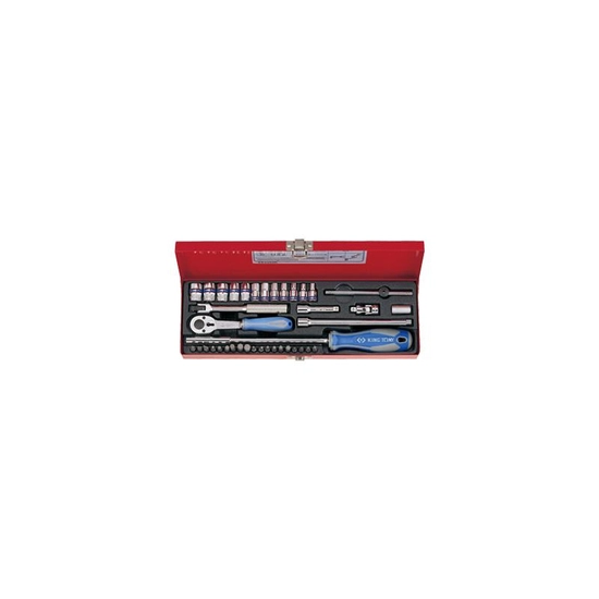 ZESTAW NARZĘDZI 1/4" 39cz. NASADKI KRÓTKIE, 6-kąt. 4 - 13mm + BITY, Z GRZECHOTKĄ I AKCESORIAMI, KASETA 2540MR King Tony