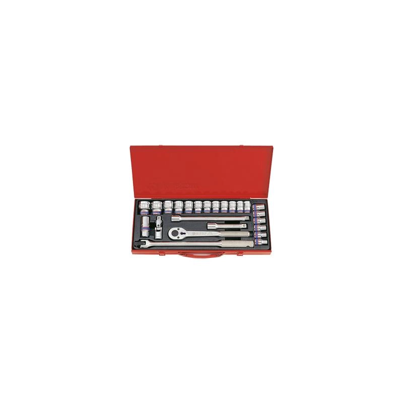 ZESTAW NASADEK 1/2" 24cz. KRÓTKIE 12-kąt. 10 - 32mm Z GRZECHOTKĄ I AKCESORIAMI, KASETA 4032MR King Tony