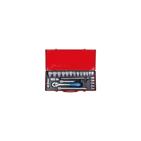 ZESTAW NASADEK 1/2", 24cz. KRÓTKIE 6-kąt. 10 - 32mm Z GRZECHOTKĄ I AKCESORIAMI, KASETA 4528MR King Tony