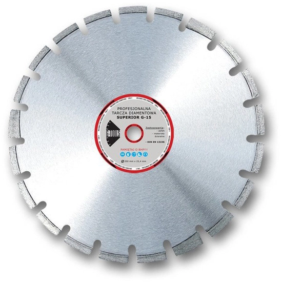 Tarcze diamentowe służą do precyzyjnego cięcia materiałów bez powodowania ich erozji. Wersja do asfaltu posiada specjalne skośne/powiększone segmenty: zapewniają one większą wydajność pracy i bardzo zmniejszają ryzyko uszkodzeń tarczy podczas cięcia kruchych materiałów (efekt zacierania tuż za diamentową koroną tarczy). Duża przestrzeń pomiędzy segmentami tnącymi ma wpływ na bardzo wydajne odprowadzanie urobku powstałego w skutek cięcia. Gładka powierzchnia tarczy przekłada się na brak" chlapania brudną wodą" przy cięciu metodą "na mokro". Tarcze diamentowe charakteryzują się dużą twardością i kruchością zarazem. Na brzegu dysku umieszczone są kryształy diamentowe (ułożone w segmenty). Kiedy jeden z diamentów wypadnie lub ulegnie starciu, natychmiast zostaje odsłonięty kolejny i można kontynuować cięcie (bez przerywania pracy).