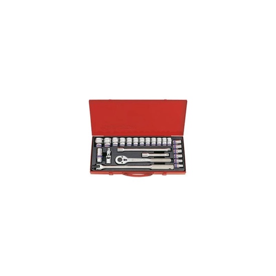 ZESTAW NASADEK 1/2" 24cz. KRÓTKIE 6-kąt. 10 - 32mm Z GRZECHOTKĄ I AKCESORIAMI, KASETA 4532MR King Tony
