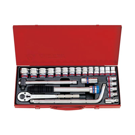 ZESTAW NASADEK CALOWYCH 1/2" 24cz. KRÓTKIE 6-kąt. 5/16" - 1.1/4" Z GRZECHOTKĄ I AKCESORIAMI, KASETA 4533SR King Tony