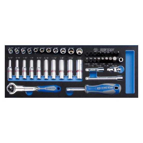 ZESTAW NASADEK I BITÓW CALOWYCH 1/4" 44cz. 12-kąt. 5/32" - 1/2" Z AKCESORIAMI, WKŁAD Z PIANKI EVA DO WÓZKA 9-2044SRV King Tony