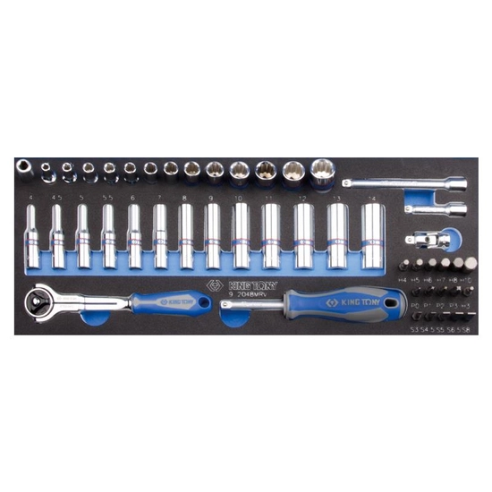 ZESTAW NASADEK I BITÓW 1/4" 48cz. KRÓTKIE / DŁUGIE, 12-kąt. 4 - 14mm Z AKCESORIAMI, WKŁAD Z PIANKI EVA DO WÓZKA 9-2048MRV King Tony