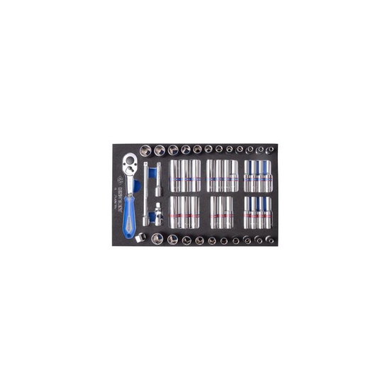 ZESTAW NASADEK 1/4" 48cz. KRÓTKIE/DŁUGIE, 6-kąt. 4 - 13mm, CALOWE 5/32"-1/2" Z AKCESORIAMI, WKŁAD Z PIANKI EVA DO WÓZKA 9-2548CRV King Tony