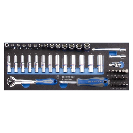 ZESTAW NASADEK 1/4" 48cz. KRÓTKIE / DŁUGIE, 6-kąt. 4 - 14mm, BITY, Z AKCESORIAMI, WKŁAD Z PIANKI EVA DO WÓZKA 9-2548MRV King Tony