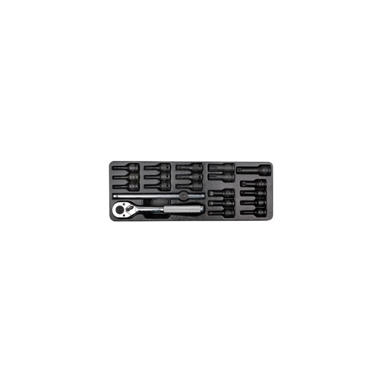 ZESTAW NASADEK UDAROWYCH 3/8" 21cz. KRÓTKIE PH1-PH4, PŁASKIE 5.5-10, TORX T10-T60 Z AKCESORIAMI, WKŁAD DO WÓZKA 9-3421PP King Tony