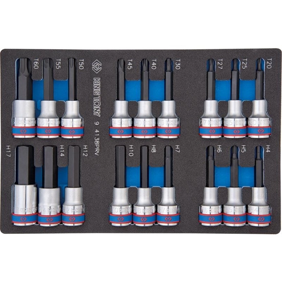 ZESTAW DŁUGICH NASADEK 1/2" HEX H4 - H17 + TORX T20 - T60, WKŁAD Z PIANKI EVA DO WÓZKA 9-4138PRV King Tony