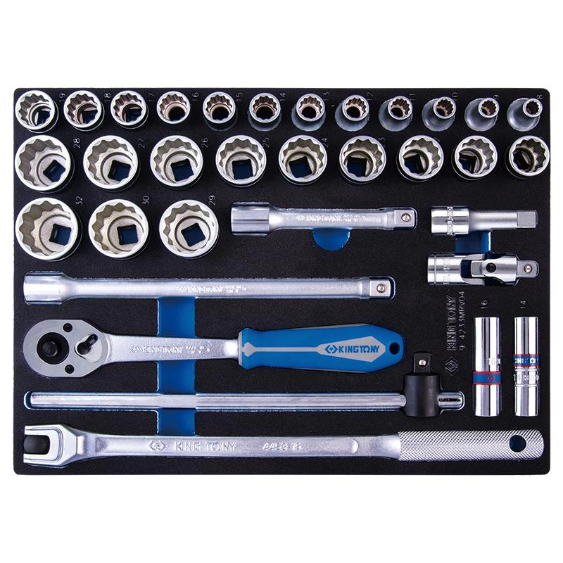 ZESTAW NASADEK 1/2" 33cz. KRÓTKIE 12-kąt. 8 - 32mm Z AKCESORIAMI, WKŁAD Z PIANKI EVA DO WÓZKA 9-4233MRV04 King Tony