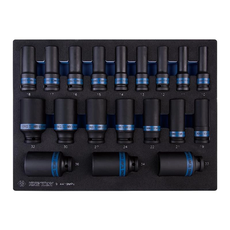 ZESTAW NASADEK UDAROWYCH 1/2" 19 cz. DŁUGIE 6-KĄT, 10 - 36mm, WKŁAD Z PIANKI EVA DO WÓZKA 9-4419MPV King Tony
