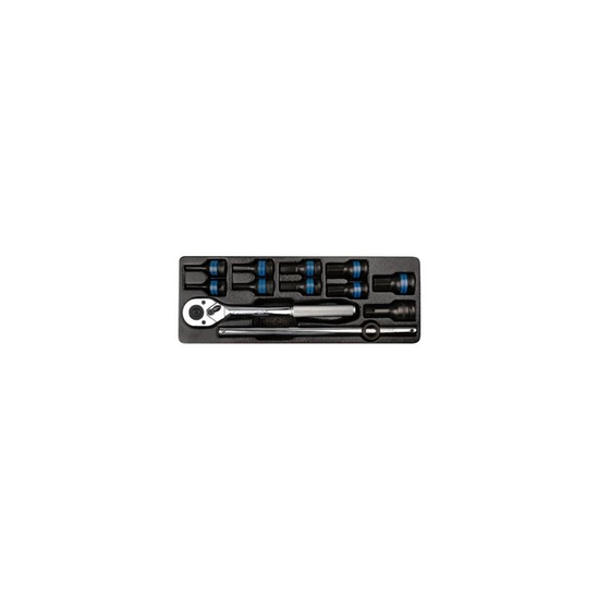 ZESTAW NASADEK UDAROWYCH 1/2" 12cz. KRÓTKIE HEX H4 - H19 Z AKCESORIAMI, WKŁAD DO WÓZKA 9-4432MP King Tony