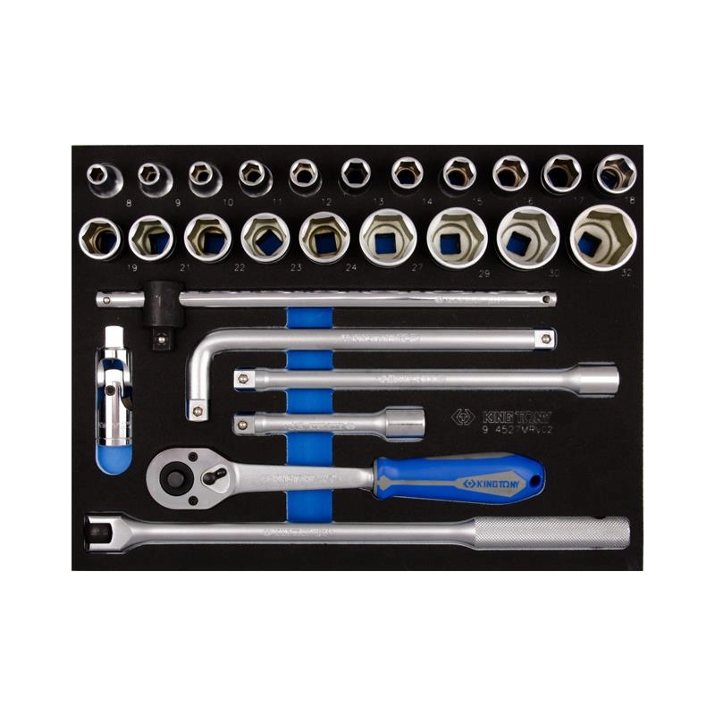ZESTAW NASADEK 1/2" 27cz. KRÓTKIE 6-kąt. 8 - 32mm Z AKCESORIAMI, WKŁAD Z PIANKI EVA DO WÓZKA 9-4527MRV02 King Tony