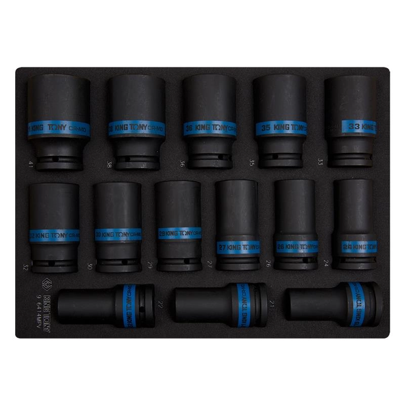 ZESTAW NASADEK UDAROWYCH 3/4" 14cz. DŁUGIE 6-kąt. 19 - 41mm, WKŁAD Z PIANKI EVA DO WÓZKA 9-6414MPV King Tony