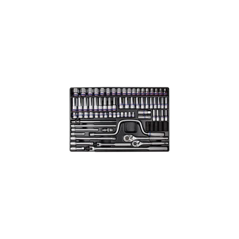 ZESTAW NASADEK 3/8" + 1/2" KRÓTKIE/DŁUGIE 76cz. 8 - 32mm, Z AKCESORIAMI, WKŁAD DO WÓZKA 9-7576MR King Tony