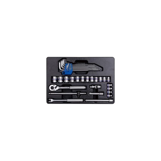 ZESTAW NASADEK 3/8" 31cz. KRÓTKIE 6-kąt. 6 - 22mm Z AKCESORIAMI + ZESTAW IMBUSÓW 1.5 - 10mm, WKŁAD DO WÓZKA 9-93523MR King Tony