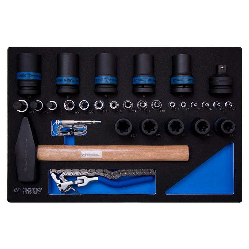 ZESTAW NASADEK + MŁOTEK + REDUKCJA + PRÓBNIK + KLUCZ DO FILTRÓW, 30 CZ. WKŁAD Z PIANKI EVA DO WÓZKA 9-99430MFV King Tony