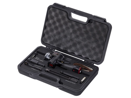model | wymiar taśmy bezkońcowej | obroty | ciśnienie zasilania | zużycie powietrza | długość całkowita | waga | średnica wewnętrzna przewodu zasilającego | poziom hałasu |