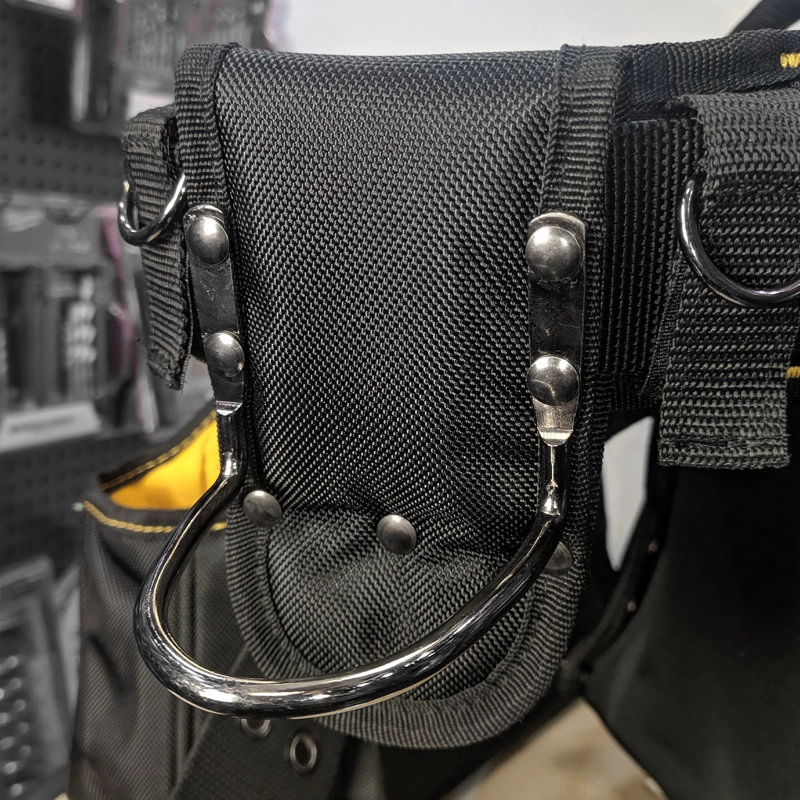 Dwie główne kieszenie, potrójny uchwyt na młotek lub miarkę z czego wszystko można odłączyć. Kieszenie są idealne do użytku z paskiem jak i bez niego.
