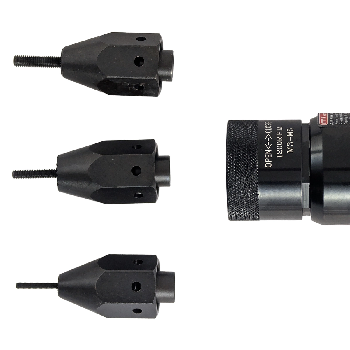 Mighty Seven PB-1305 oferuje dużą elastyczność dzięki trzem szybko wymiennym głowicom roboczym, które obsługują nitonakrętki w rozmiarach M3, M4 i M5. Dzięki temu narzędzie można łatwo dostosować do specyficznych wymagań projektu, bez konieczności posiadania kilku różnych urządzeń. Mechanizm wymiany głowic został zaprojektowany tak, aby zapewnić szybkie i bezproblemowe przejście między rozmiarami.