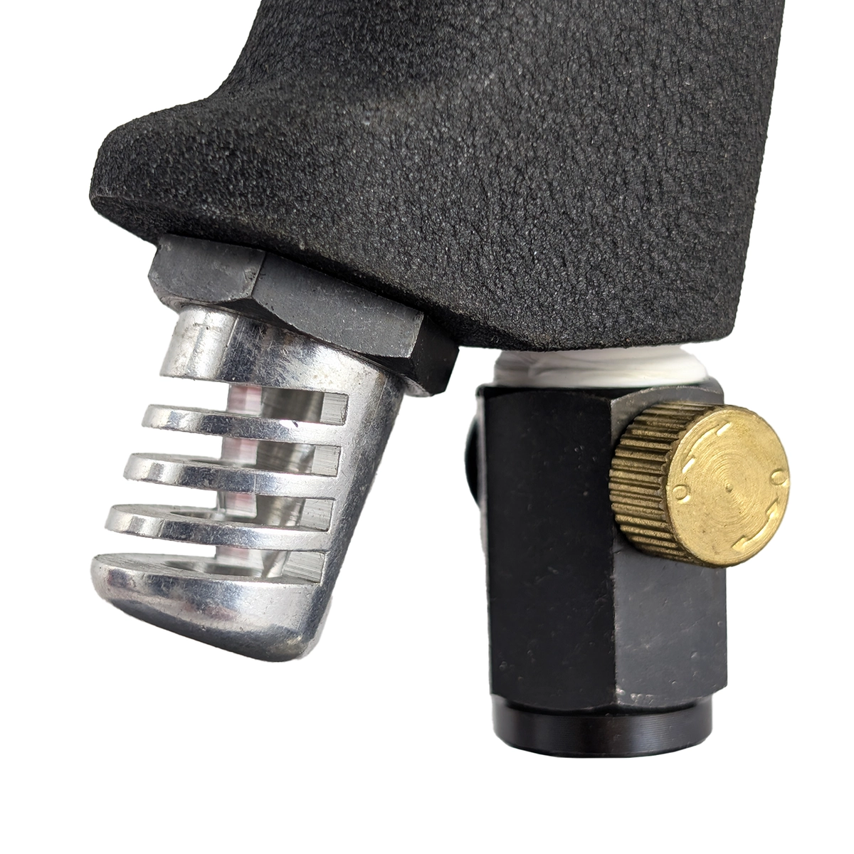 Ergonomia i komfort użytkowania to kolejne atuty tej nitownicy. W dolnej części rękojeści znajduje się tłumik, który skutecznie redukuje hałas generowany podczas pracy. Jest to szczególnie ważne w środowiskach, gdzie długotrwała praca z hałaśliwymi urządzeniami może być uciążliwa. Ponadto, regulowany dławik przepływu powietrza umożliwia precyzyjne ustawienie siły zaciskowej, co pozwala na optymalne dopasowanie parametrów pracy do konkretnego zadania.