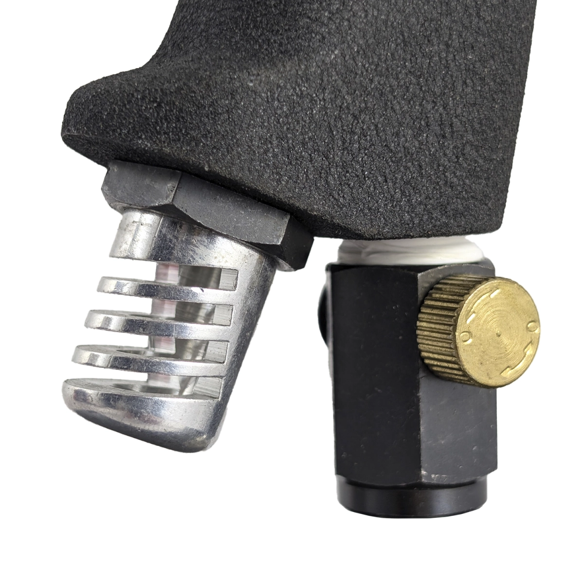 Komfort pracy z nitownicą PB-1308 został dodatkowo zwiększony dzięki wbudowanemu tłumikowi, który skutecznie redukuje hałas generowany podczas pracy. Dodatkowo, regulowany dławik przepływu powietrza umożliwia precyzyjne ustawienie siły zaciskowej, co pozwala na optymalne dopasowanie parametrów pracy do konkretnego zadania.