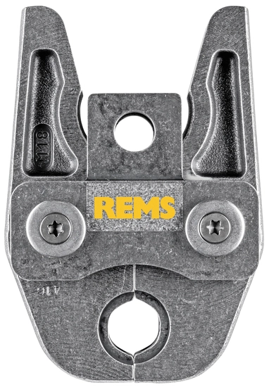 Cęgi zaciskowe o dużej obciążalności z kutej, ciągliwo- -twardej i odpowiednio hartowanej stali specjalnej. Kontury zaciskowe cęgów REMS są specyficzne dla każdego systemu i odpowiadają konturom poszczególnych systemów zaciskowych. Zapewnia to bezproblemową zgodność i pewne zaciskanie. Szczęki cęgów zaciskowych posiadają precyzyjnie obrabiany kontur przy pomocy centrum obróbkowego CNC i maszynowo dokładnie zaokrąglony. Gwarantuje to małe tolerancje wykonawcze.