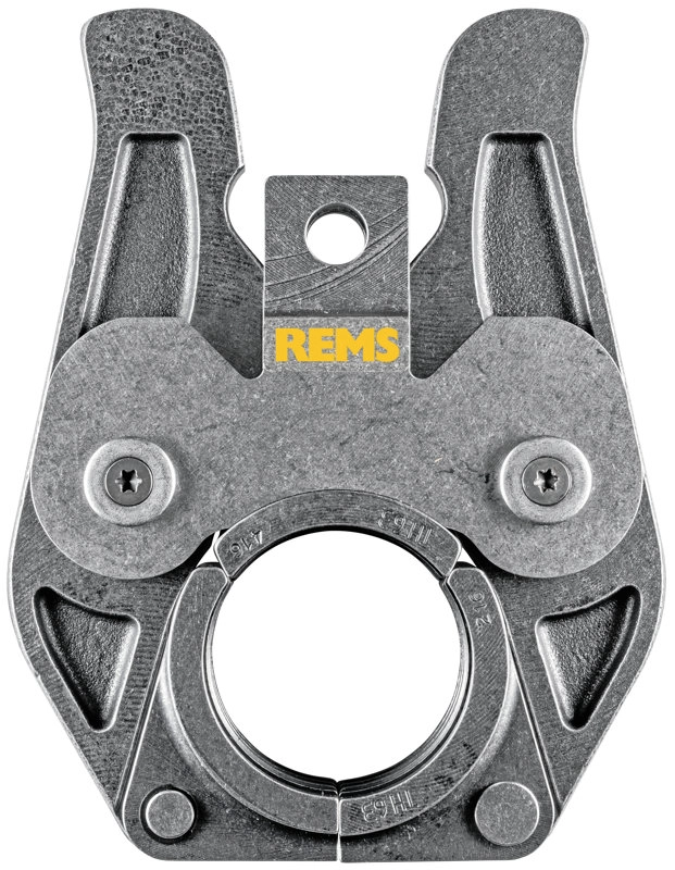 Cęgi zaciskowe o dużej obciążalności z kutej, ciągliwo- -twardej i odpowiednio hartowanej stali specjalnej. Kontury zaciskowe cęgów REMS są specyficzne dla każdego systemu i odpowiadają konturom poszczególnych systemów zaciskowych. Zapewnia to bezproblemową zgodność i pewne zaciskanie. Szczęki cęgów zaciskowych posiadają precyzyjnie obrabiany kontur przy pomocy centrum obróbkowego CNC i maszynowo dokładnie zaokrąglony. Gwarantuje to małe tolerancje wykonawcze.
