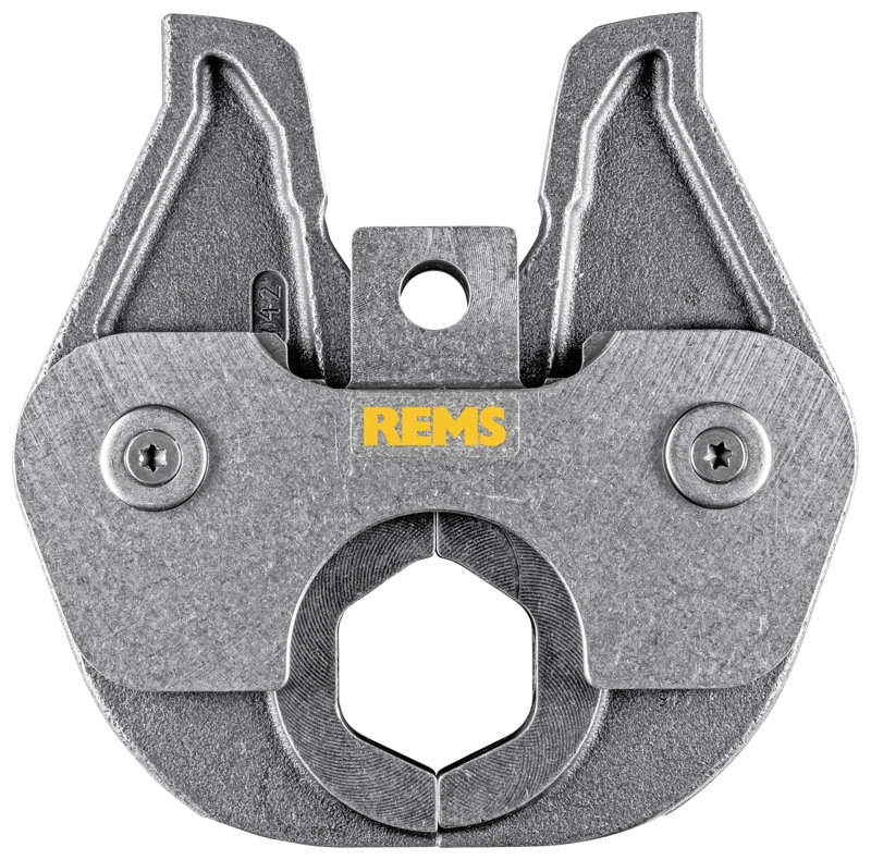 Cęgi zaciskowe o dużej obciążalności z kutej, ciągliwo- -twardej i odpowiednio hartowanej stali specjalnej. Kontury zaciskowe cęgów REMS są specyficzne dla każdego systemu i odpowiadają konturom poszczególnych systemów zaciskowych. Zapewnia to bezproblemową zgodność i pewne zaciskanie. Szczęki cęgów zaciskowych posiadają precyzyjnie obrabiany kontur przy pomocy centrum obróbkowego CNC i maszynowo dokładnie zaokrąglony. Gwarantuje to małe tolerancje wykonawcze.