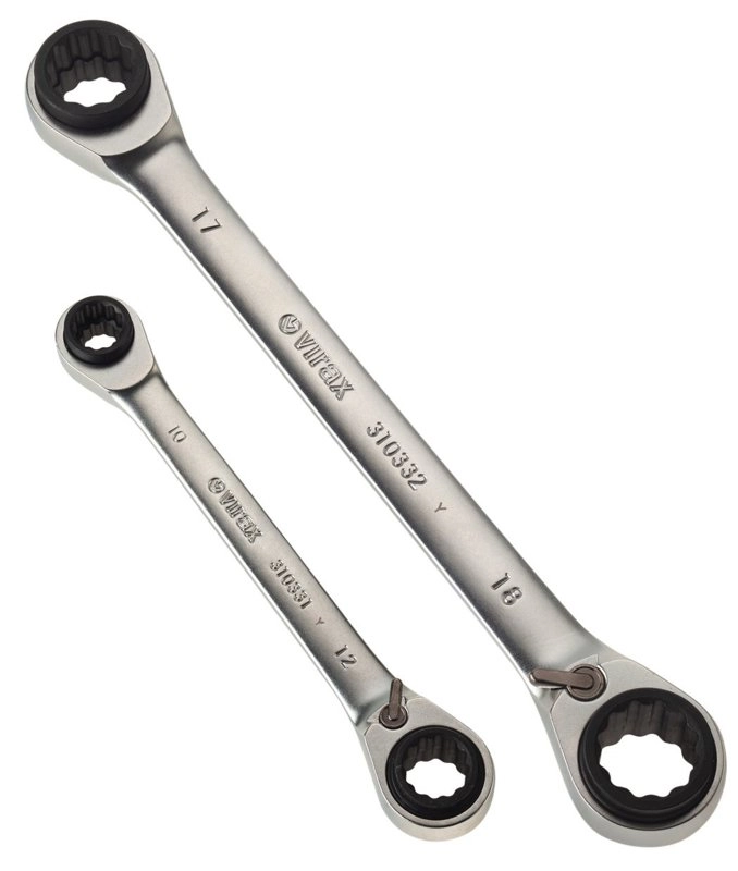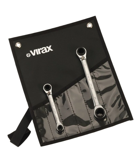 - Praktyczny zestaw dwóch kluczy z grzechotką o skoku co 5°. 8 wymiarów w dwóch kluczach: 8, 10, 12, 13, 16, 17, 18, 19 mm. Dźwignia zmiany kierunku, umożliwiająca zmianę kierunku bez obracania klucza.