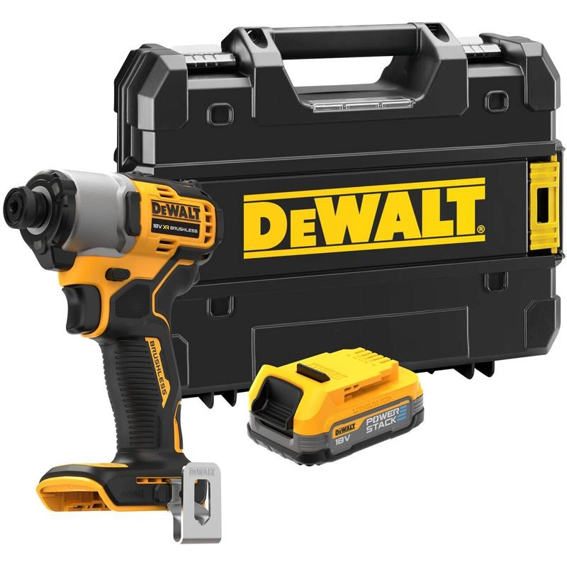 - 18V XR Zakrętarka udarowa, 1 bieg, 0-3200 obr/min, 0-4200 ud./min, 192Nm, 1 akumulator 1.7Ah POWERSTACK, kufer TSTAK