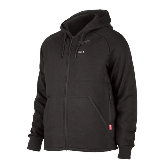 - Podgrzewana bluza z kapturem M12™ zasilana akumulatorem M12™ z elementami grzewczymi z włókna węglowego wytwarza i rozprowadza ciepło na klatkę piersiową i plecy.