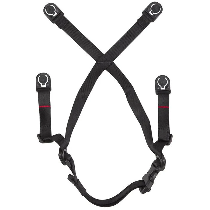 - Dwa paski podbródkowe, które można łatwo wymienić i dostosować do warunków pracy. Pasek podbródkowy zgodny z normą EN397 do pracy na ziemi jest oznaczony kolorami czarnym i szarym. Pasek podbródkowy zgodny z normą EN12492 do pracy na wysokości jest oznaczony kolorami czarnym i czerwonym.