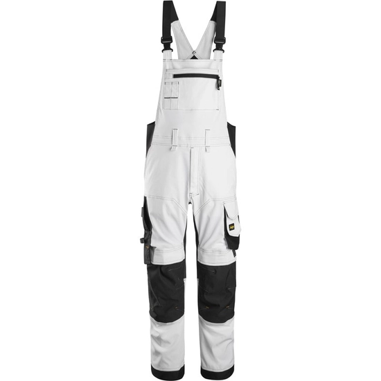 Uniwersalne spodnie na szelkach z profilowanymi nogawkami i panelami z 4-kierunkowego stretchu, które zapewniają swobodę ruchów i komfort pracy przez cały dzień.