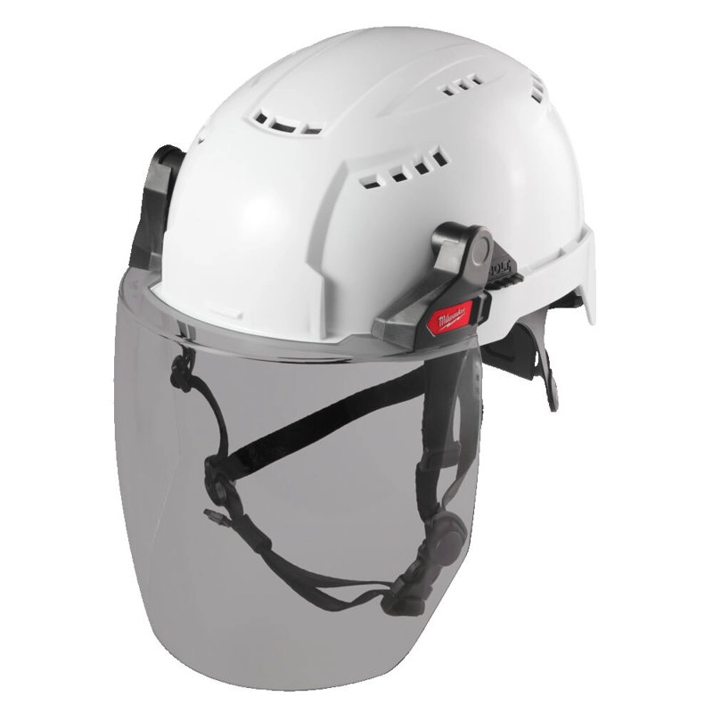 - Wersja z siatką ma odporność na uderzenia F zgodnie z EN 1731, siatka wykonana ze stali. Ta wersja jest idealna do zastosowań zewnętrznych i ogrodniczych/ konserwacyjnych.