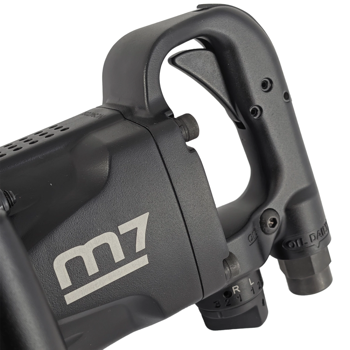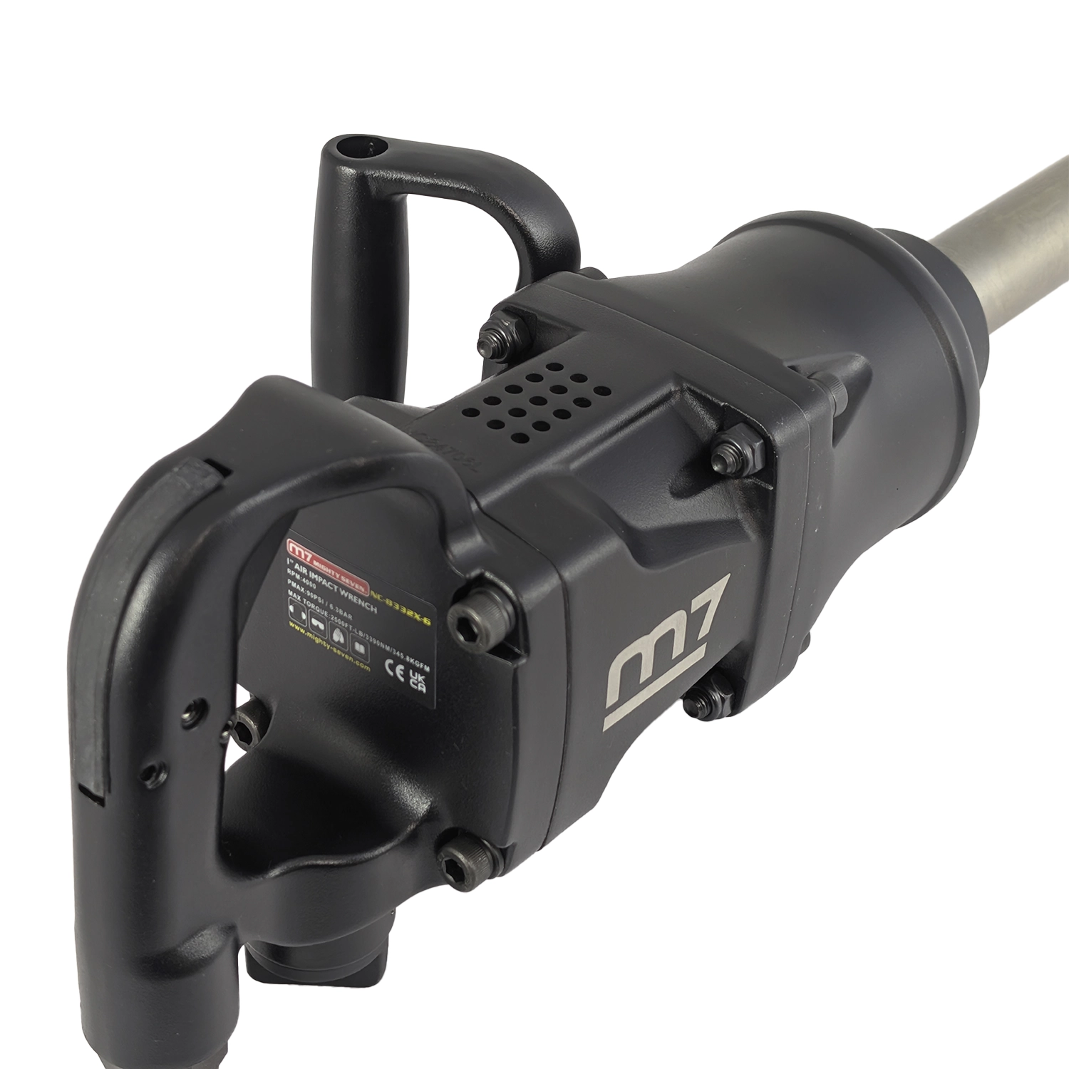 Klucz udarowy Mighty Seven NC-8332X-6 to zaawansowane narzędzie pneumatyczne klasy premium, stworzone z myślą o najbardziej wymagających zadaniach. Wyposażony w najmocniejszą w klasie M7 turbinę napędową dla kluczy 1”, gwarantuje niezrównaną wydajność i moc. Mechanizm udarowy twin-hammer zapewnia natychmiastowe przekazanie maksymalnej energii generowanej przez turbinę, co czyni klucz wyjątkowo skutecznym nawet w najtrudniejszych warunkach pracy. Obudowa mechanizmu napędowego wykonana z ultralekkich, najwyższej jakości materiałów oraz grubościenna aluminiowa obudowa przednia chronią urządzenie przed uszkodzeniami mechanicznymi, co znacząco wydłuża jego żywotność i niezawodność.