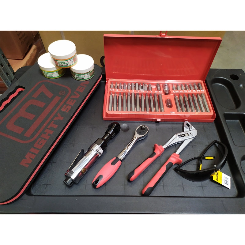 Wyposażenie wersji "B" obejmuje m.in. moduły wkrętaków, młotków, zestaw past, podkładkę pod kolana, grzechotkę, okulary ochronne, zestaw bitów oraz klucz pneumatyczny, co czyni go niezwykle kompletnym i gotowym do użytku od pierwszego dnia. Wyjątkowa konstrukcja i starannie dobrany zestaw narzędzi gwarantują, że każdy profesjonalista znajdzie w nim niezbędne wyposażenie do wykonania szerokiego zakresu prac. Wózek narzędziowy Gtools GT-001-B to inwestycja, która zapłaci się zarówno w kwestii zwiększenia efektywności pracy, jak i w podniesieniu standardów organizacji miejsca pracy.
