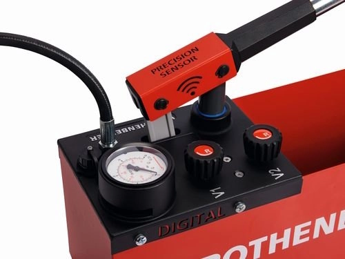- Cyfrowy czujnik ciśnienia do 30 barów umożliwiający bardzo precyzyjne pomiary i ustawienie ciśnienia testowego