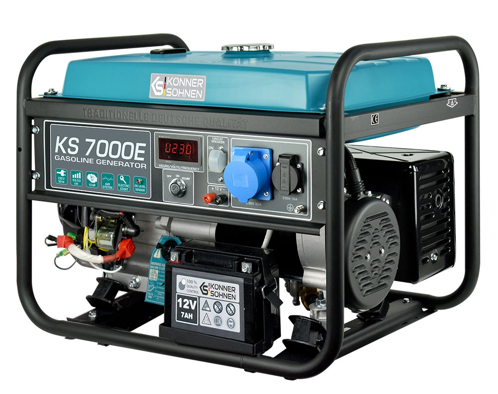 Generatory «Könner & Söhnen» wyposażone są w stalowy nadwymiarowy zbiornik paliwa, co wydłuża czas pracy generatora bez tankowania. Na zbiorniku znajduje się wskaźnik poziomu paliwa dla wygody użytkowania.