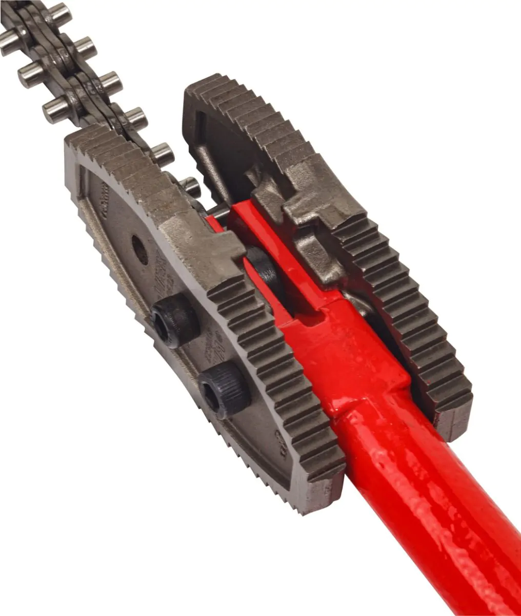 Solidny klucz do rur przeznaczony do energicznego skręcania rurociągów wodnych i kanalizacyjnych, do których dostęp jest utrudniony (wykopy na wodociągi, gazociągi, rurociągi), w przemyśle chemicznym, petrochemicznym, w stoczniach itp.