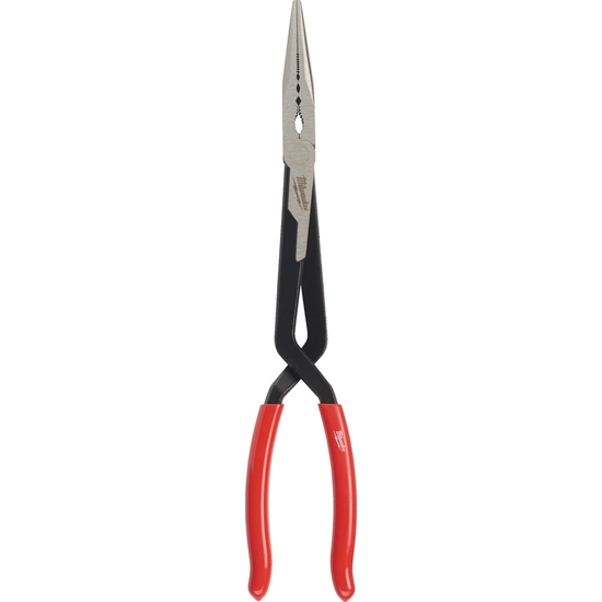 - Uchwyt krzyżowy szczypiec wydłużonych zwiększa zasięg chwytania w ciasnych przestrzeniach.
